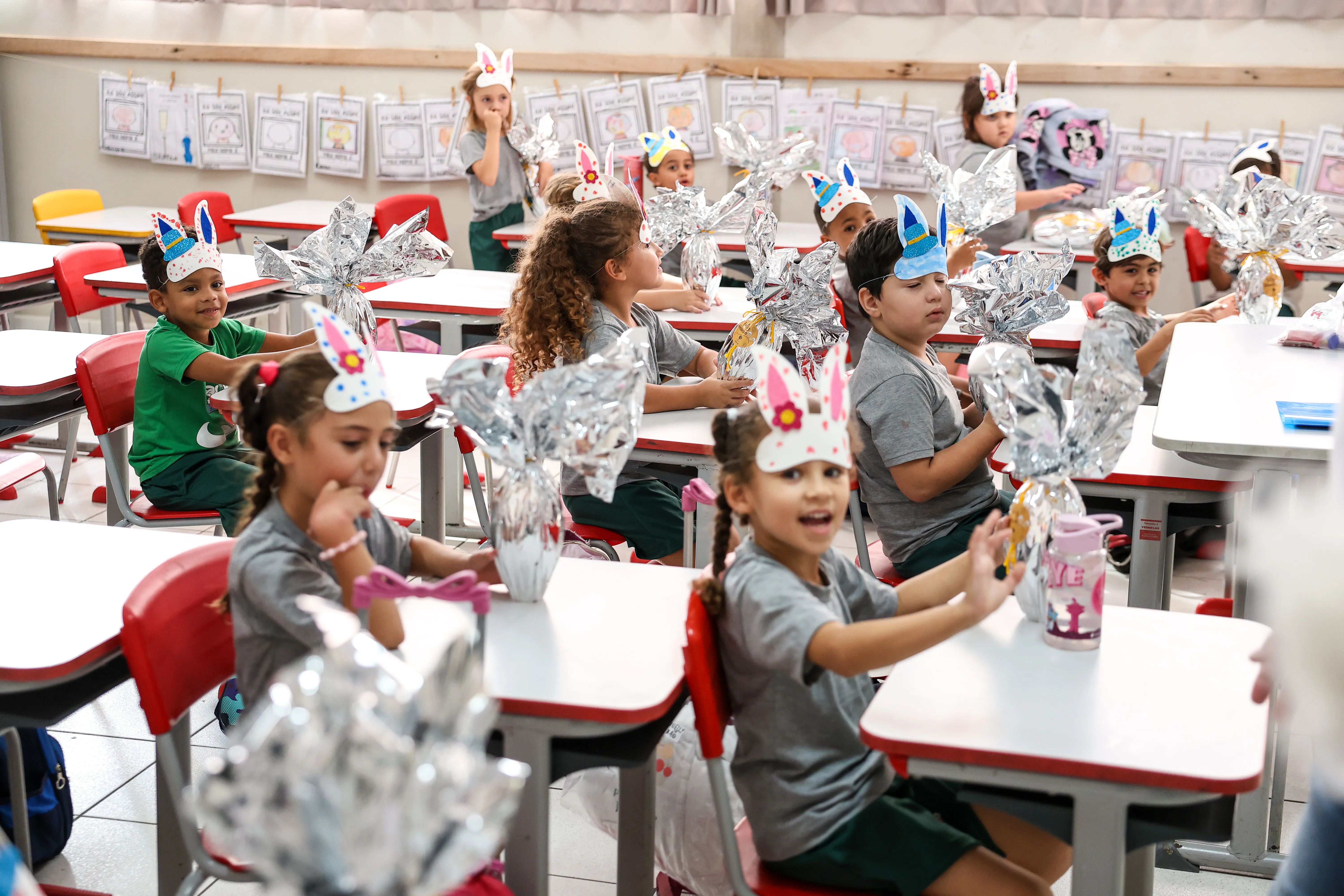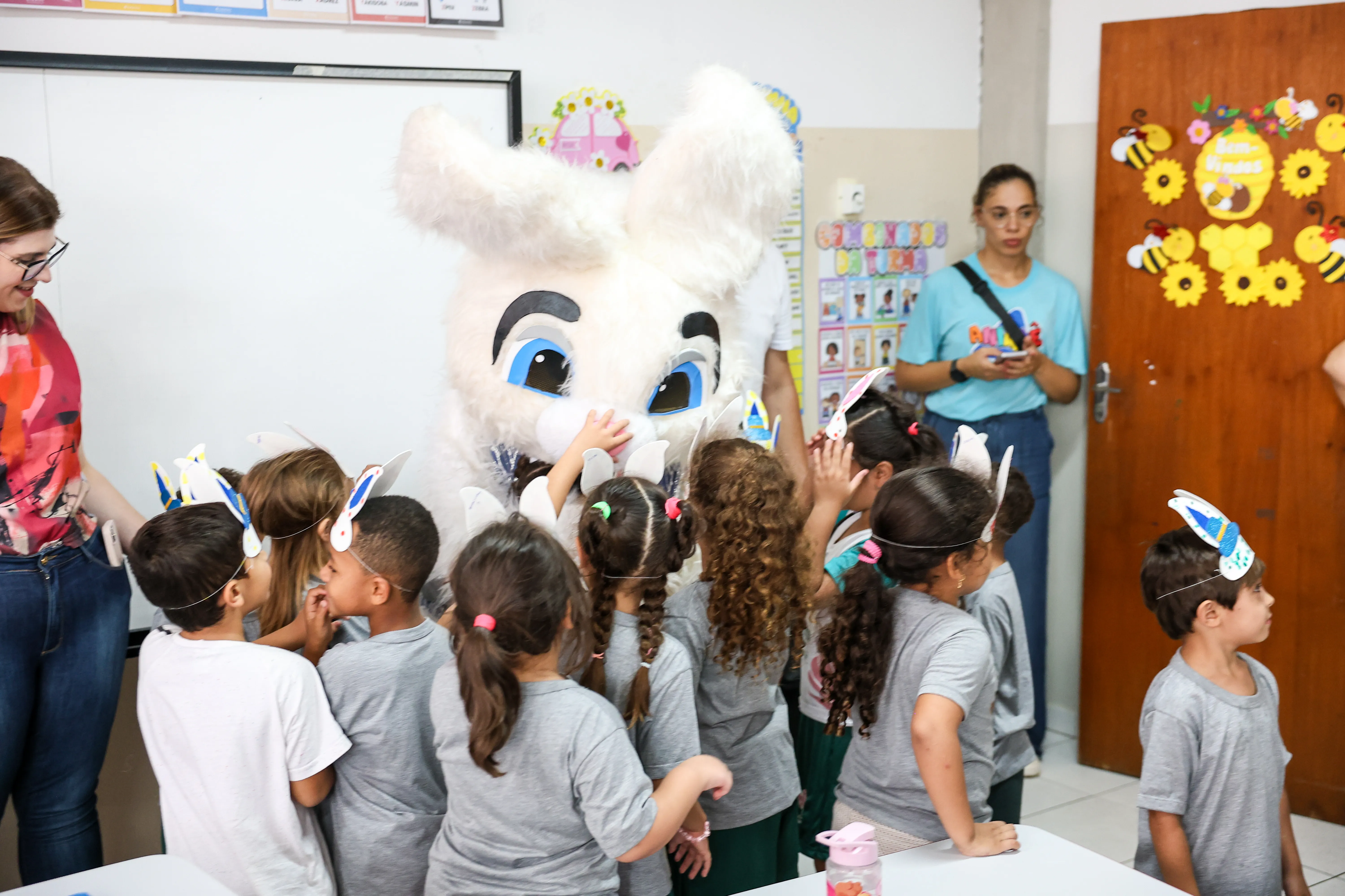 Para tornar o momento ainda mais especial, a visita do Coelho da Páscoa encantou os alunos, levando diversão, sorrisos e muita animação. As crianças participaram com entusiasmo, tornando a entrega ainda mais significativa.