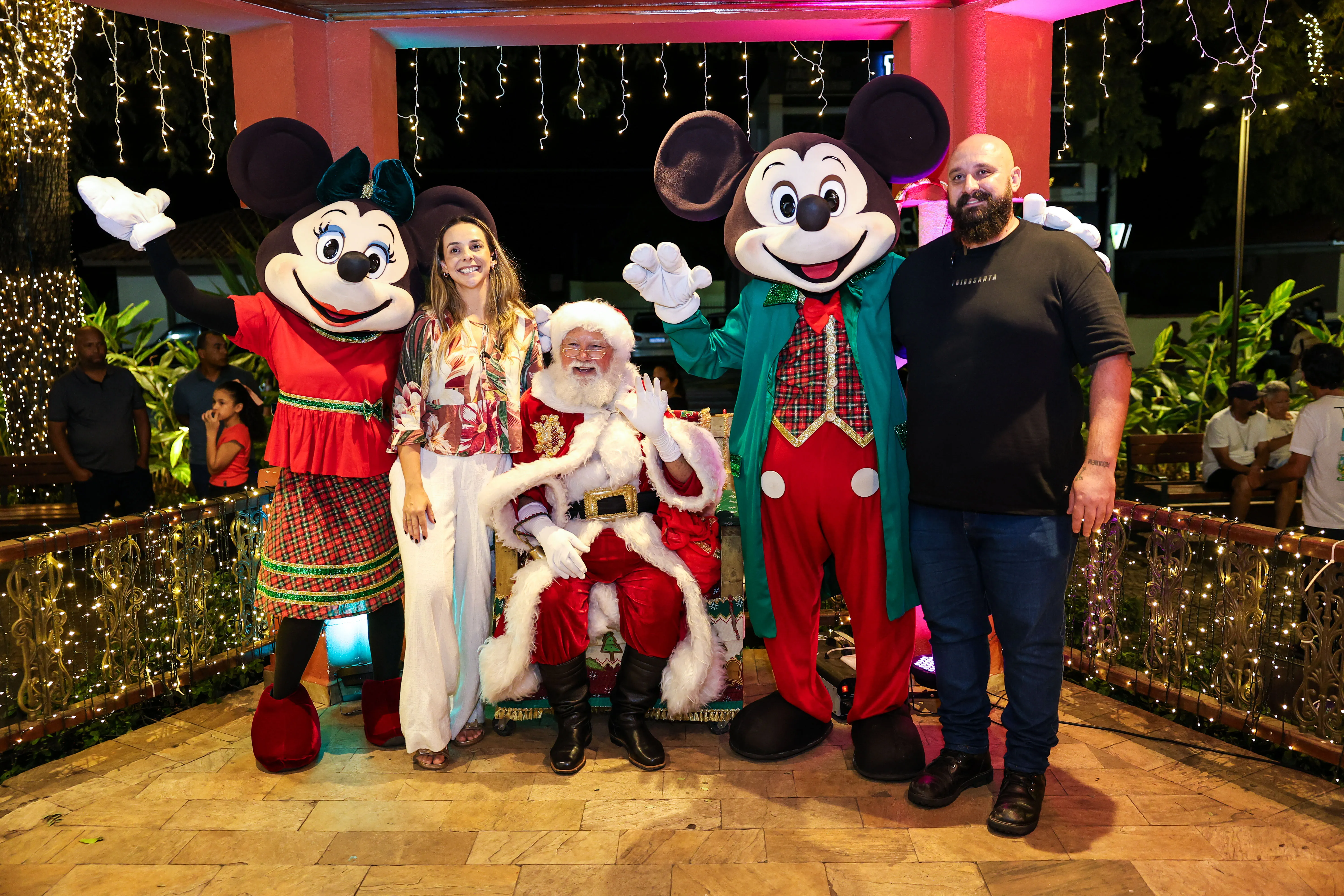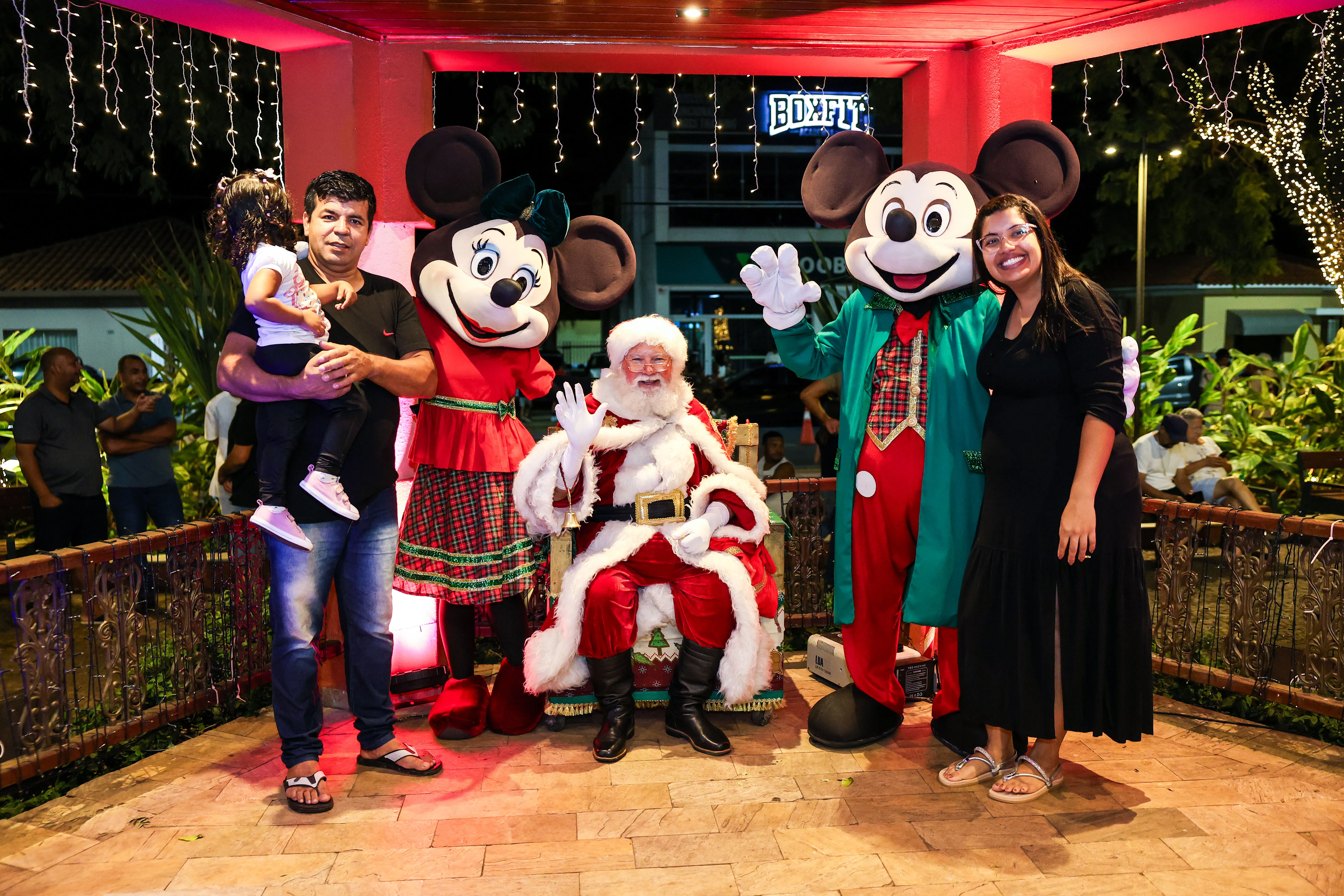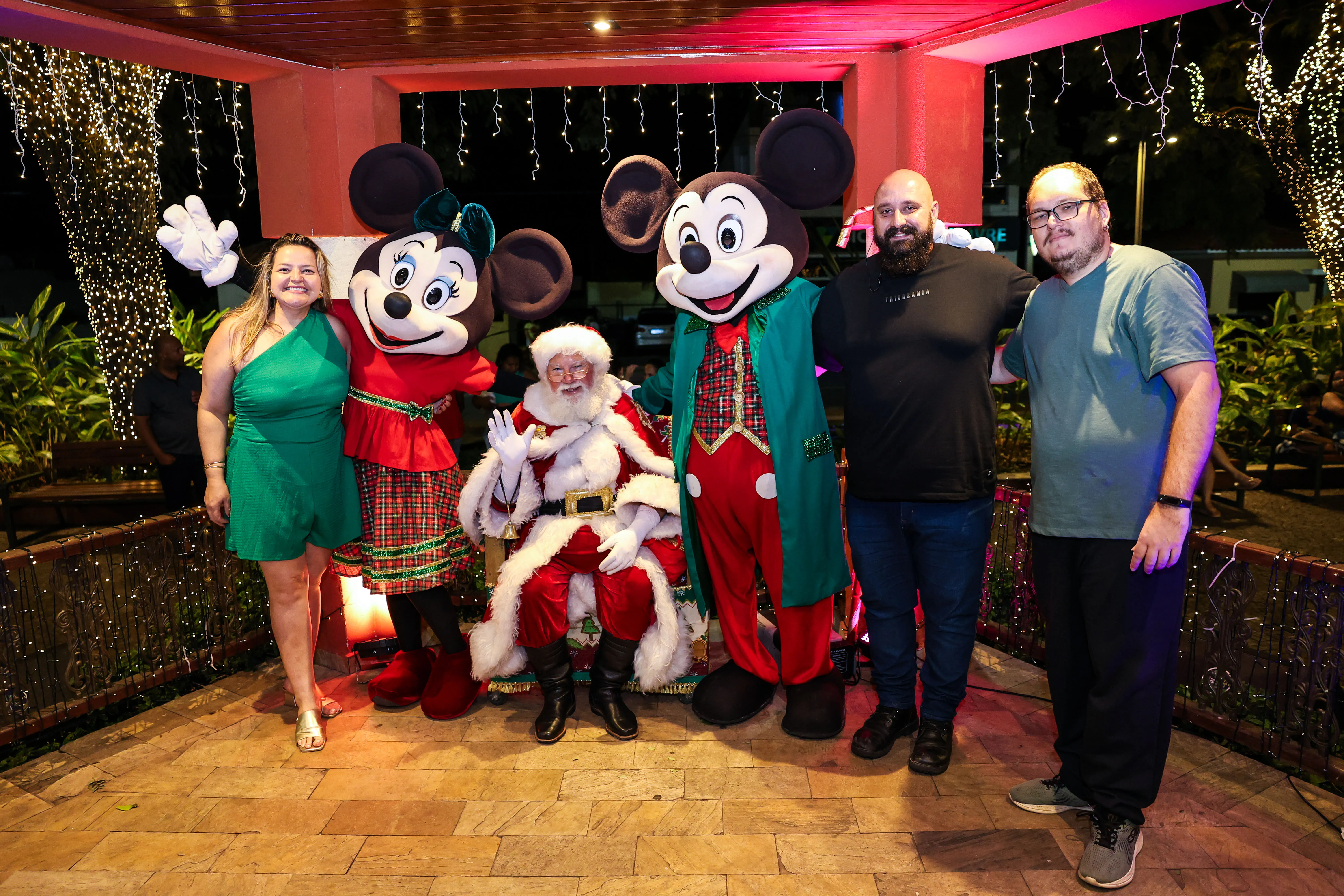 O espaço foi especialmente decorado com iluminação temática, árvores iluminadas e uma charmosa casa do Papai Noel, criando um cenário mágico que encantou crianças e adultos. A programação contou com a presença de personagens infantis Michey e Minnie.