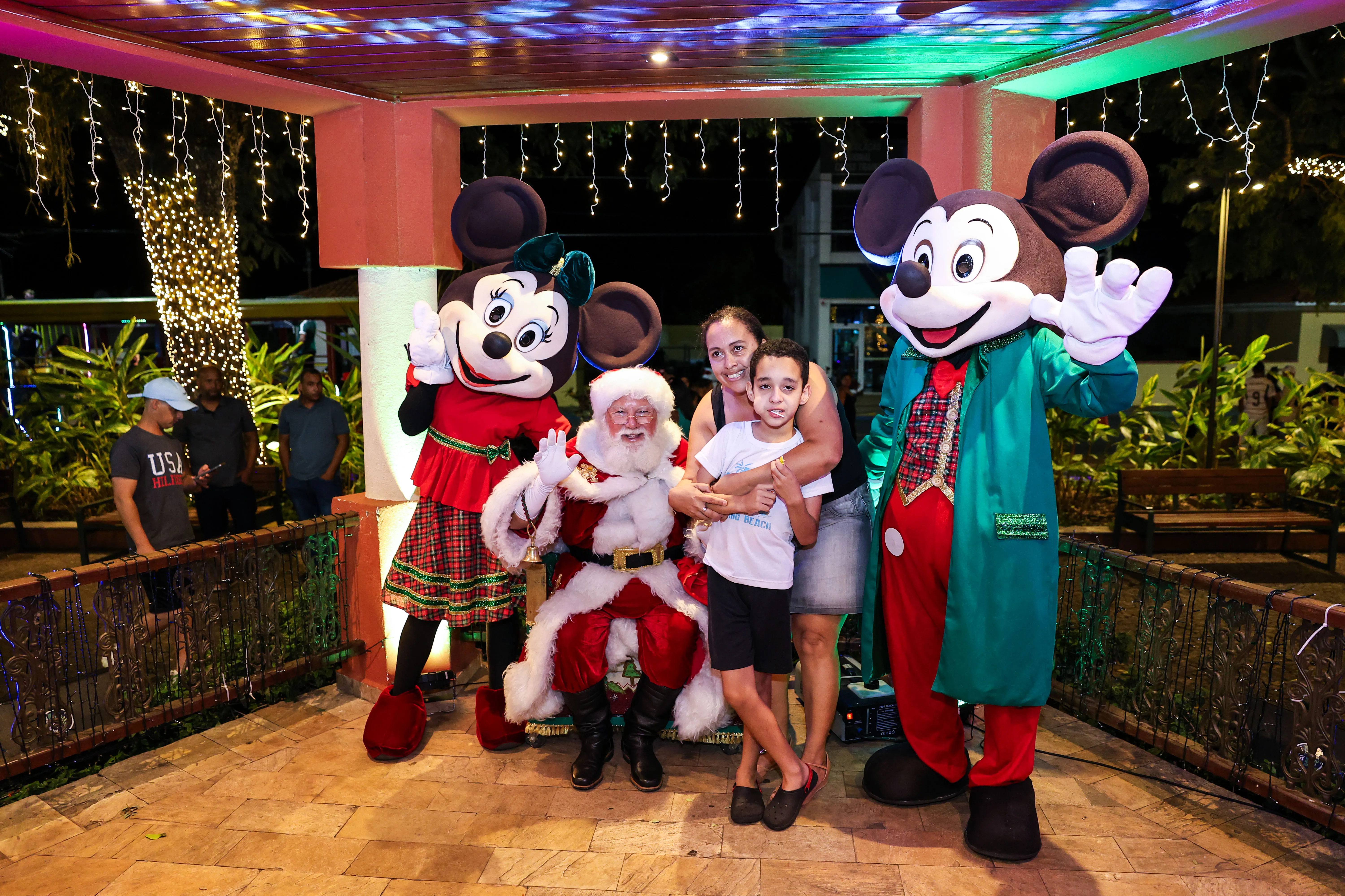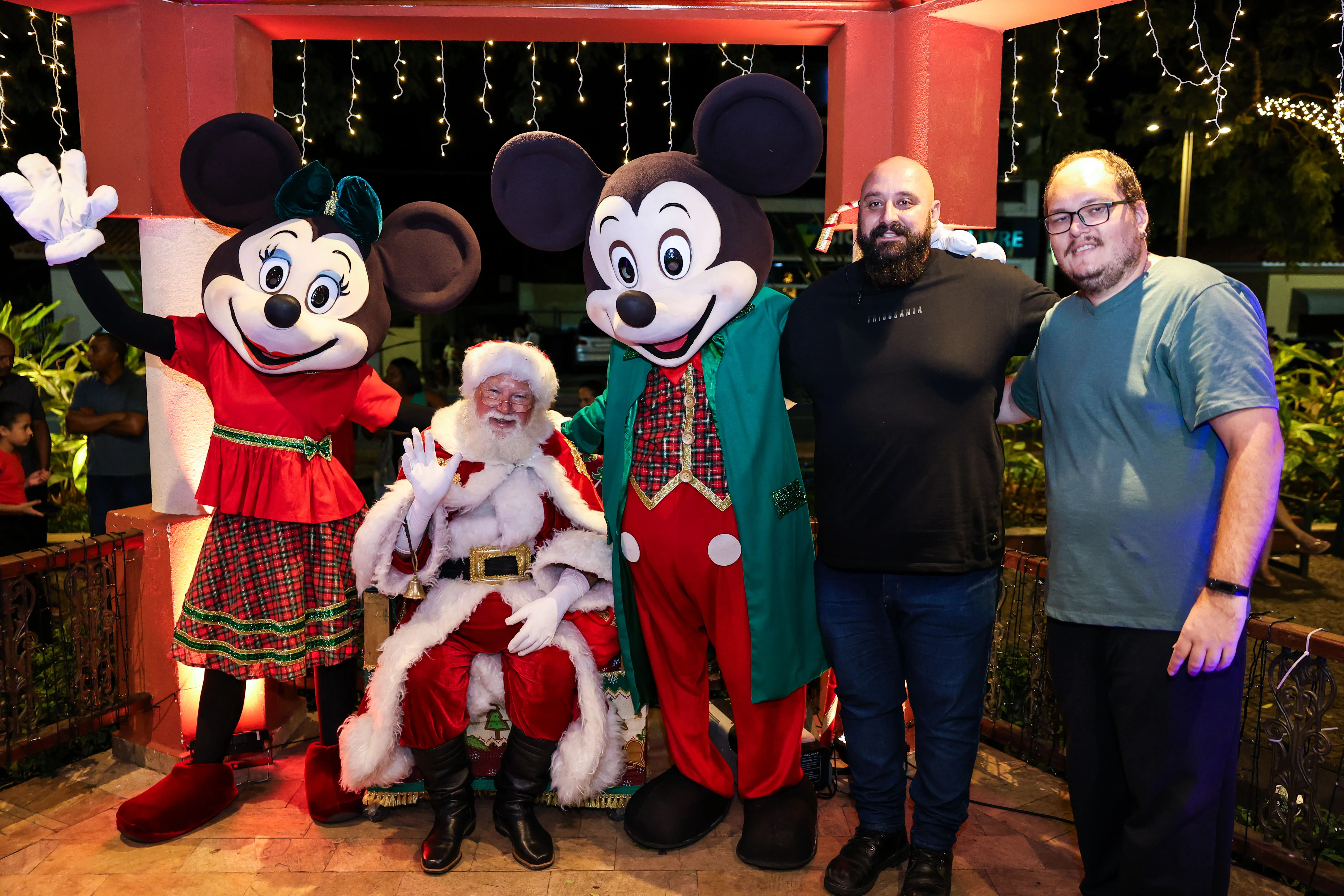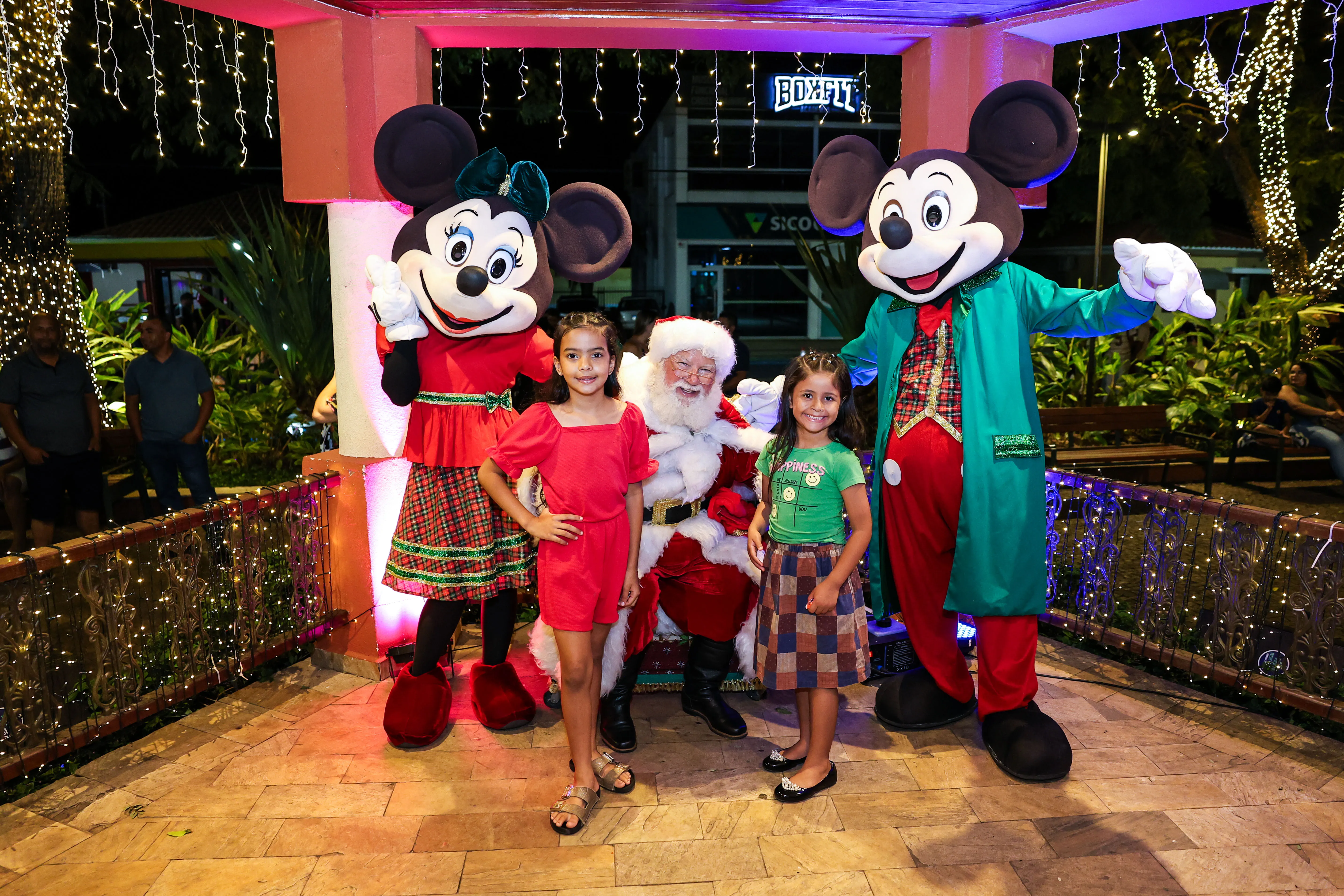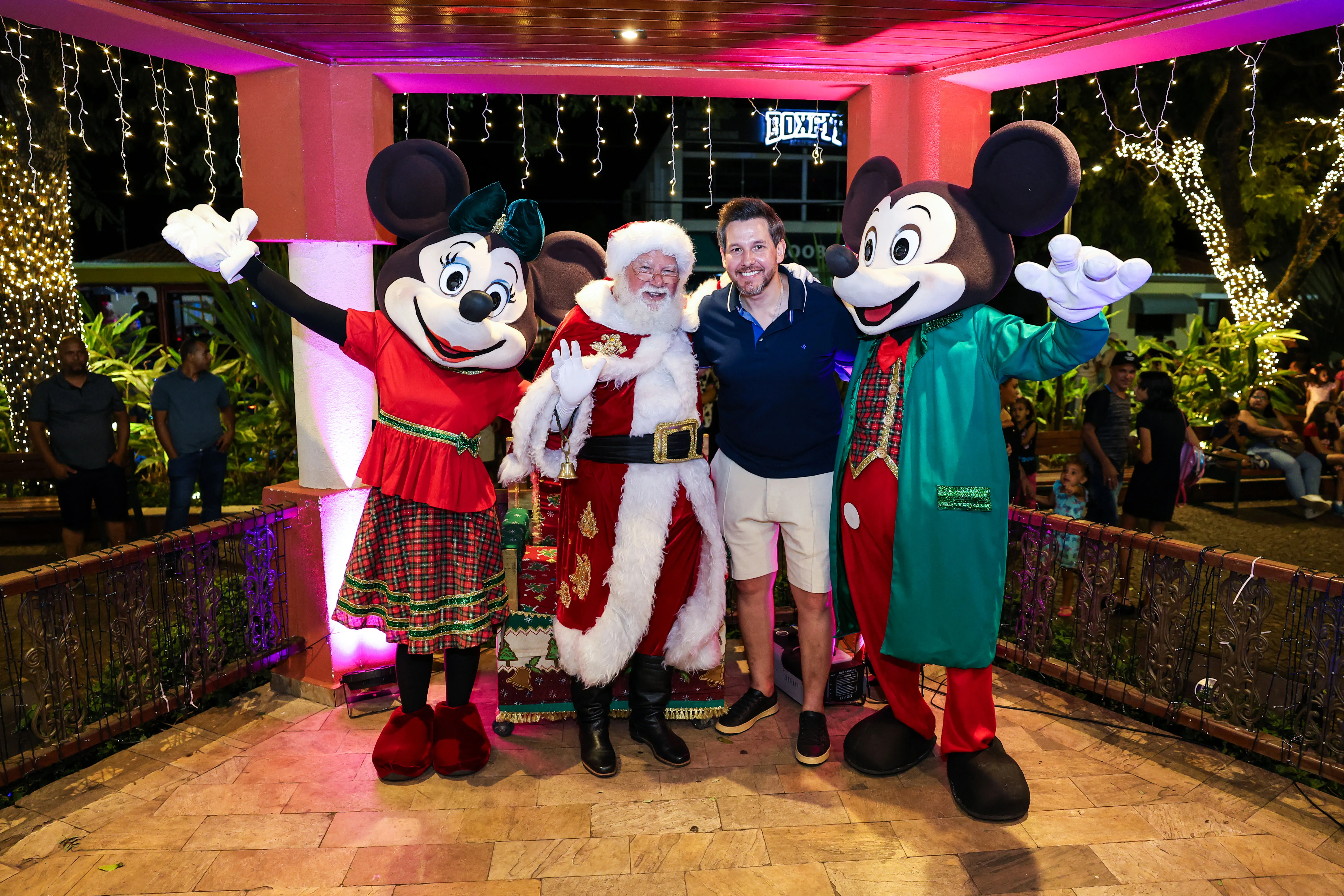 O espaço foi especialmente decorado com iluminação temática, árvores iluminadas e uma charmosa casa do Papai Noel, criando um cenário mágico que encantou crianças e adultos. A programação contou com a presença de personagens infantis Michey e Minnie.